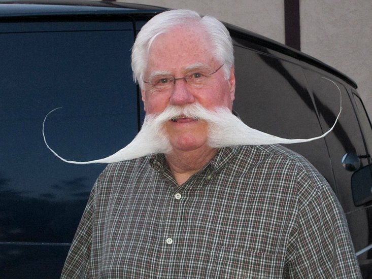 Larry McClure of Walnut Creek, California, won first place in the Mustache Division of the competition.