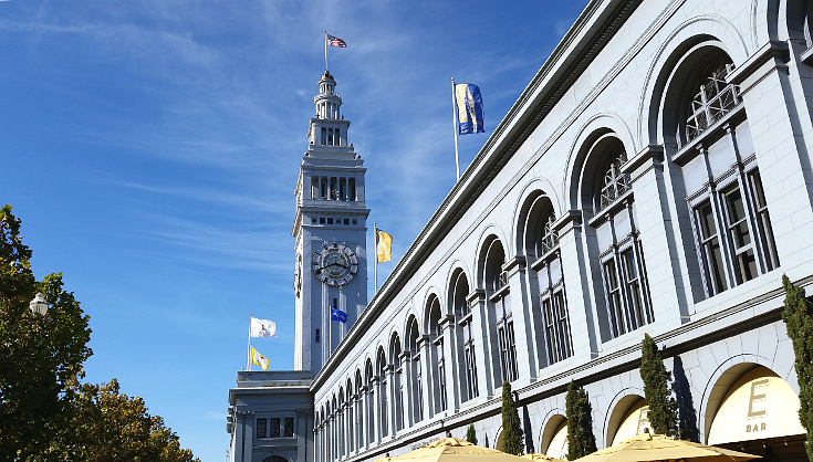 The San Francisco Ferry Building and the clock tower that withstood the 1906 quake.