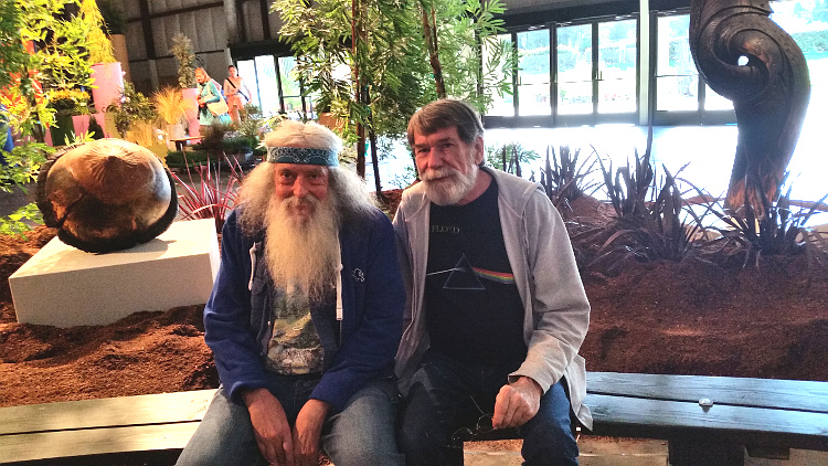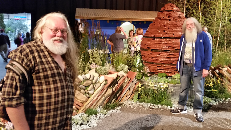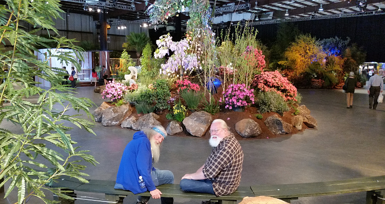 Bill and Ken are checking out the flowers on the largest garden.