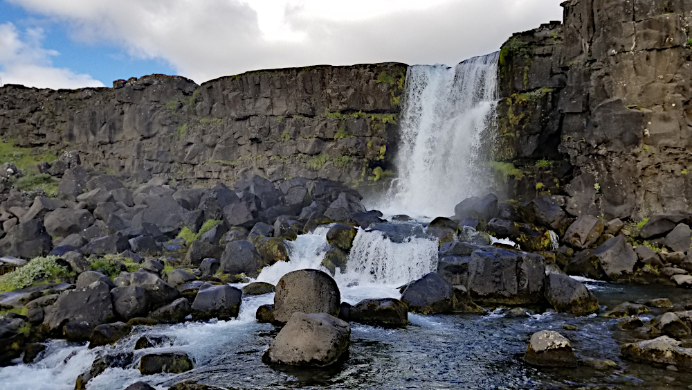 We take a walk through Pingvellir National Park and get to see our first, of many, Iceland waterfalls.