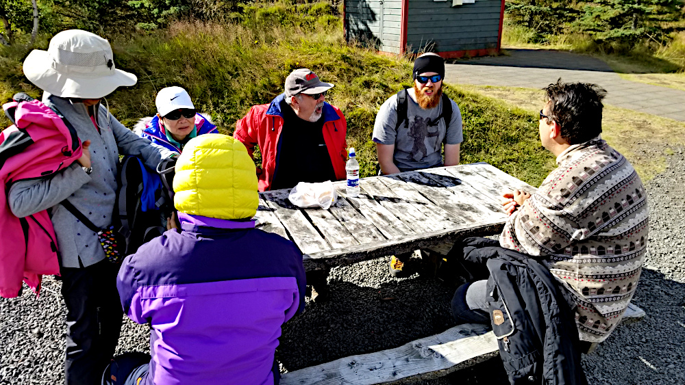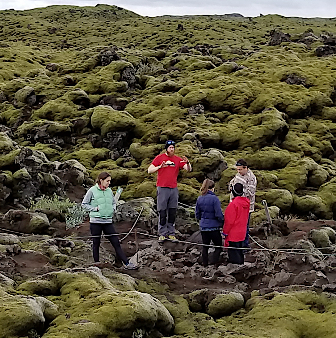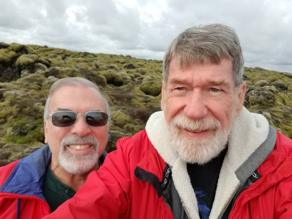 Louis and Larry are having a great time on the trip! Here we're in an area of volcanic rock that's covered in moss.