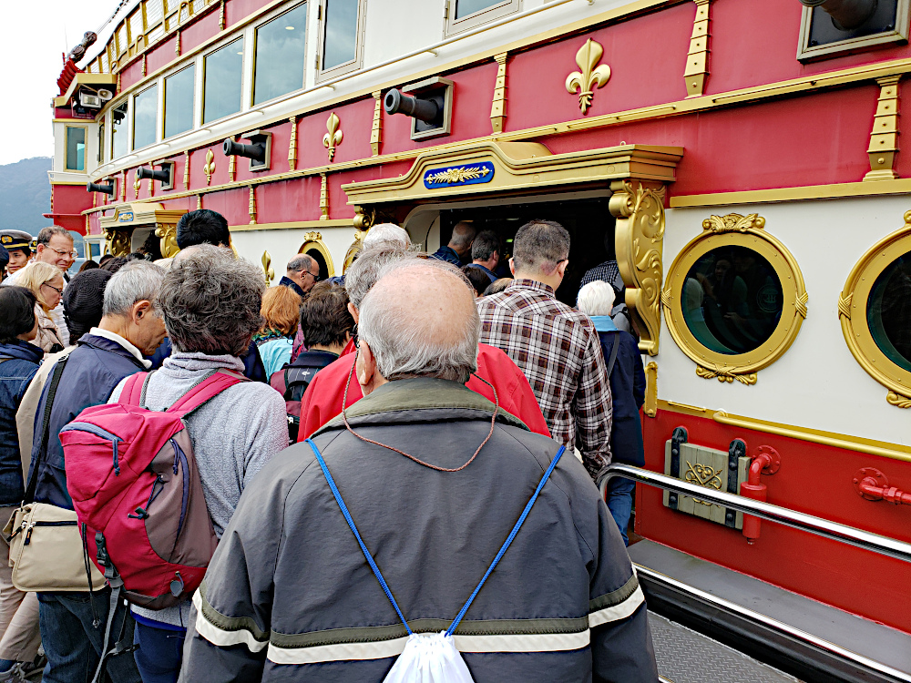 After we arrive at the tram terminal we decide to take a sail around the lake on this ship.
