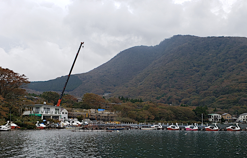 We pass a construction site where we see lots of pedal swan boats for rent.