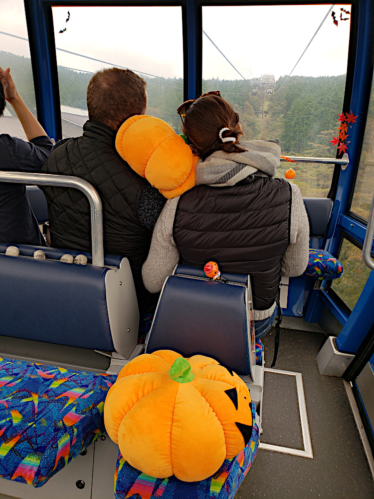 Back on the tramway in a car decorated for Halloween