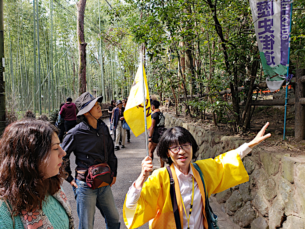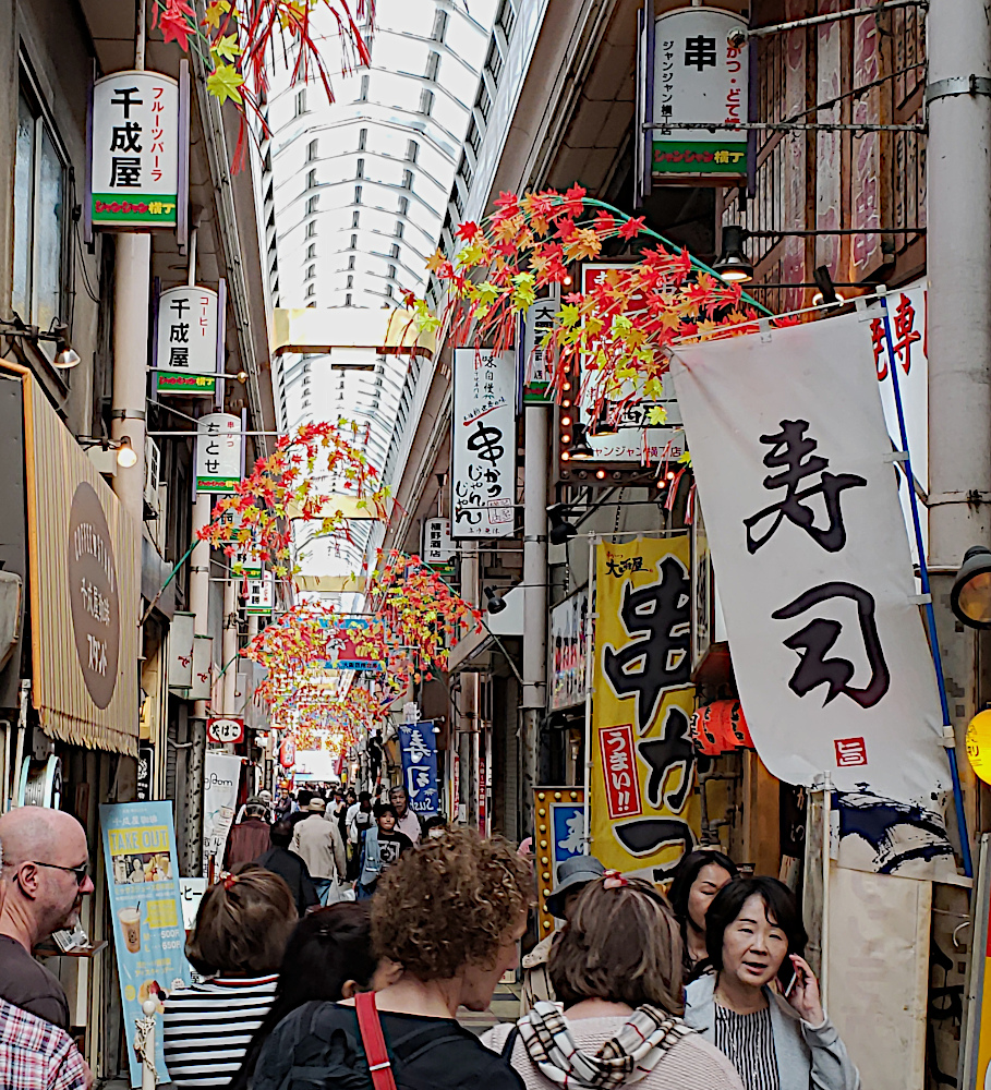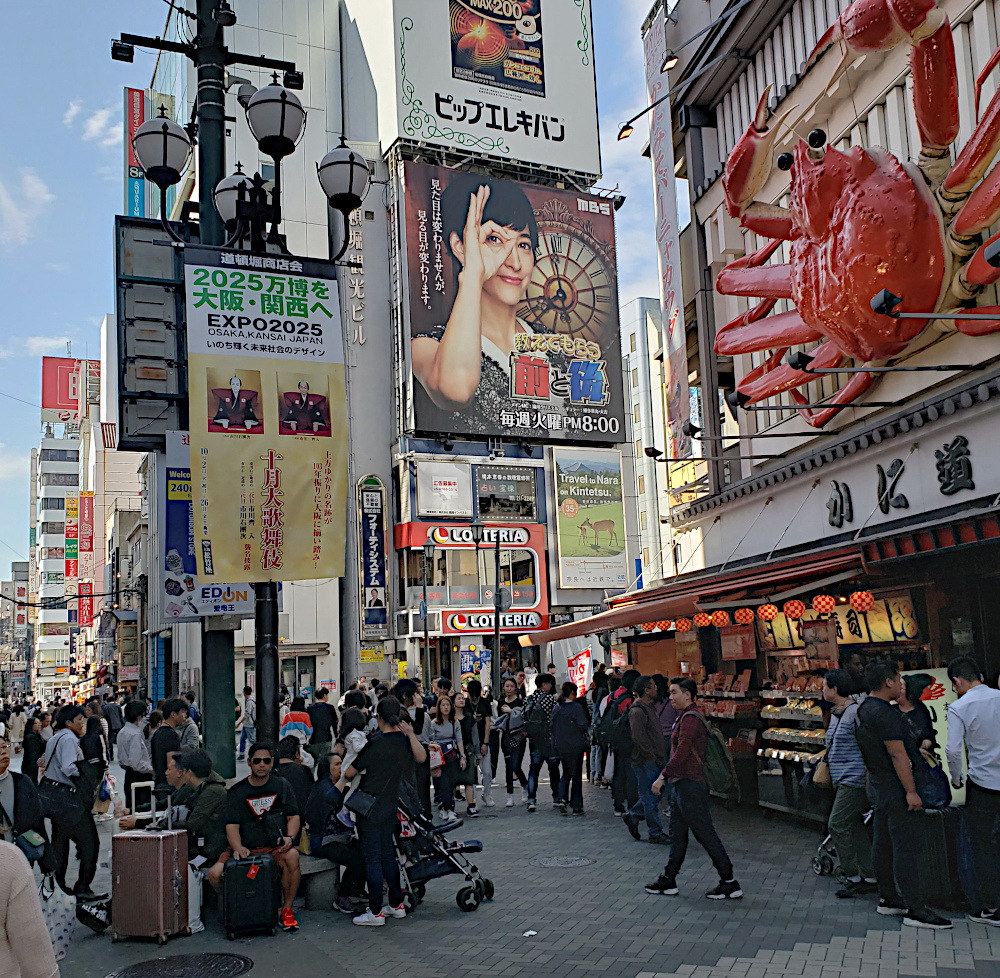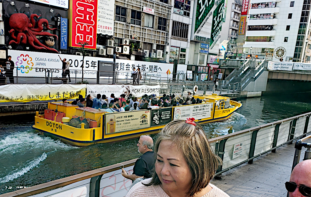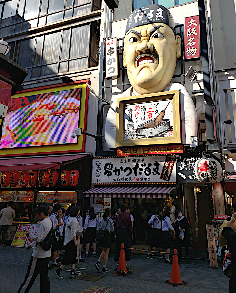 The next day we took the walking tour of Osaka. Here's our guide for the walk carrying a flag so we wouldn't lose her in the crowds.