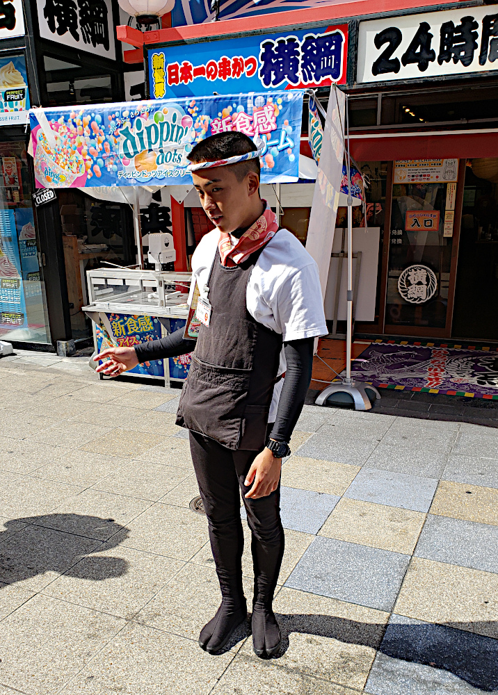 This young man, dressed in casual Japanese clothing, gave us a talk about the shops in the area.