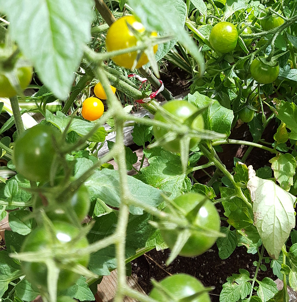 July 4 - Garden plants are producing fruit, but we haven't seen any ripe tomatoes yet.