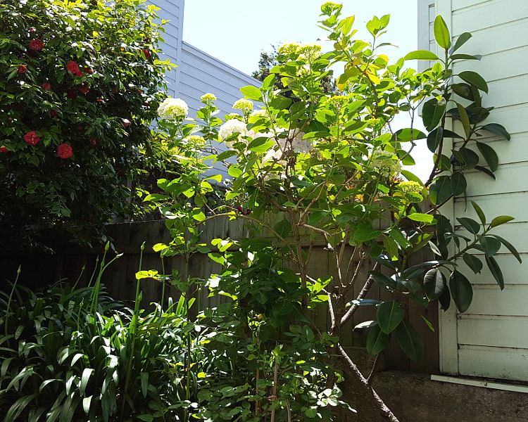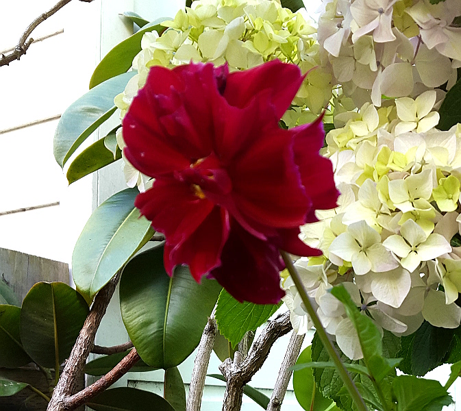 May 26 - Flowers from our garden - Camellias, Hydrangeas, Agapanthas and our Rubber Tree