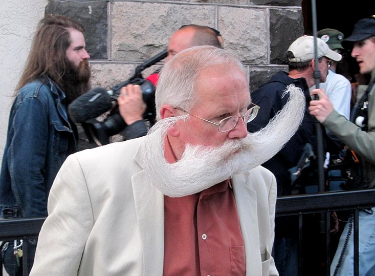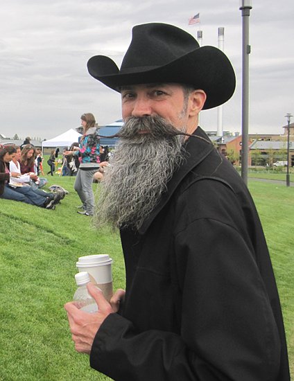 Larry McClure of Walnut Creek, California, won first place in the Mustache Division of the competition.