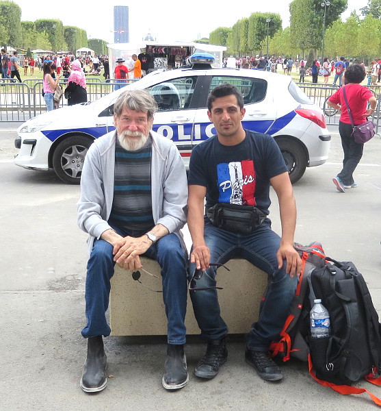 Visiting with a guy from Baghdad, Iraq, at the Eiffel Tower in Paris